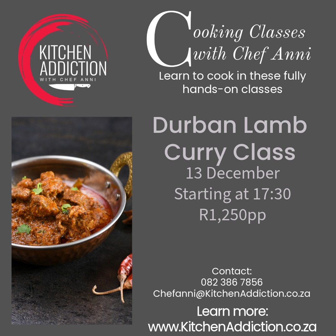 Join us for an epic Durban Lamb Curry Cooking Class on Saturday, 13 December from 17:30 on!