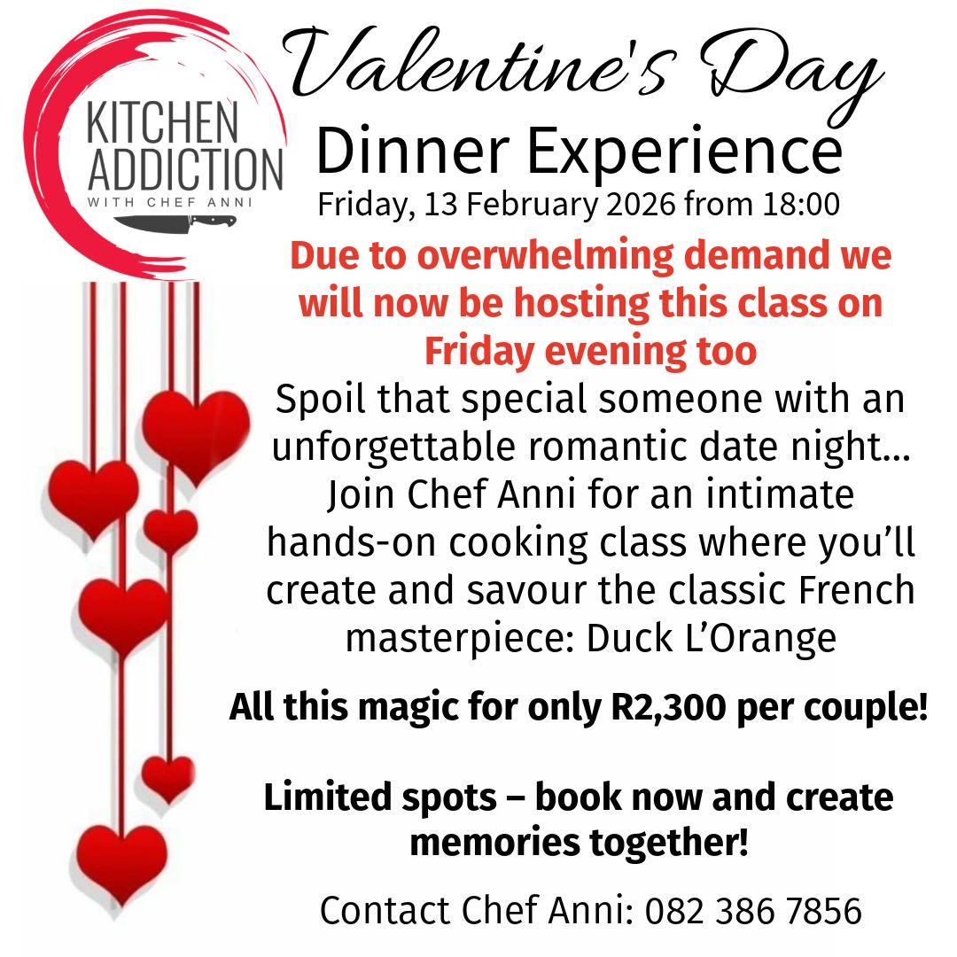 Indulge in a truly special Valentine’s Day with Private Chef Anni’s intimate, hands-on cooking experience centred around the elegant French classic, Duck L’Orange.