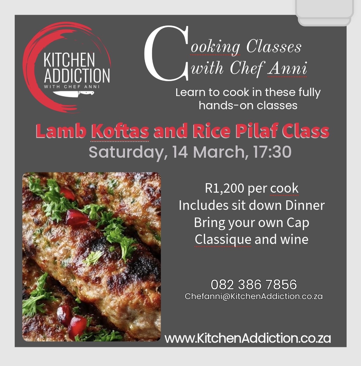 Spots fill fast! Secure your place today and discover the joy of cooking restaurant-quality lamb koftas and pilaf in your own kitchen.