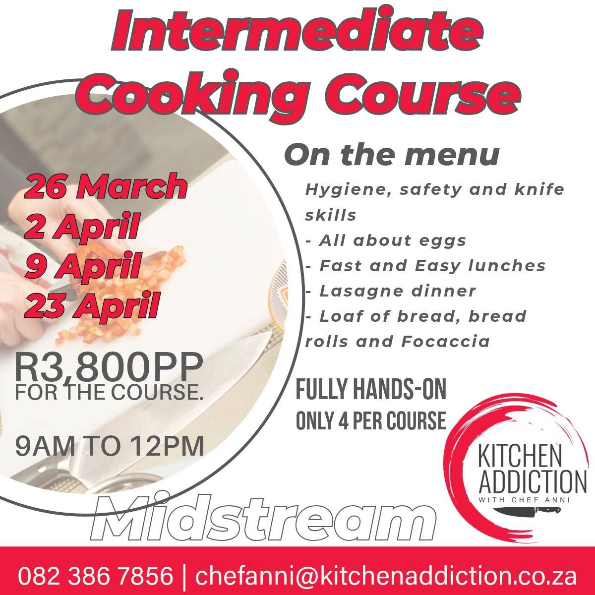 Kitchen Addiction with Chef Anni proudly presents our Intermediate Cooking Course – the perfect next step for home cooks who want to master essential techniques and delicious recipes in a fun, supportive environment!
